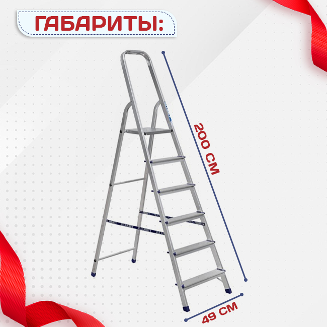 Изготовлена из высококачественного алюминиевого сплава. Представляет собой свободностоящую переносную лестницу. Широкая рабочая площадка прочно фиксирует стремянку в разложенном положении. Для придания жесткости конструкции передние ноги соединены между собой. При высоте стремянки свыше 5 ступеней модели комплектуются дополнительными стяжками безопасности.