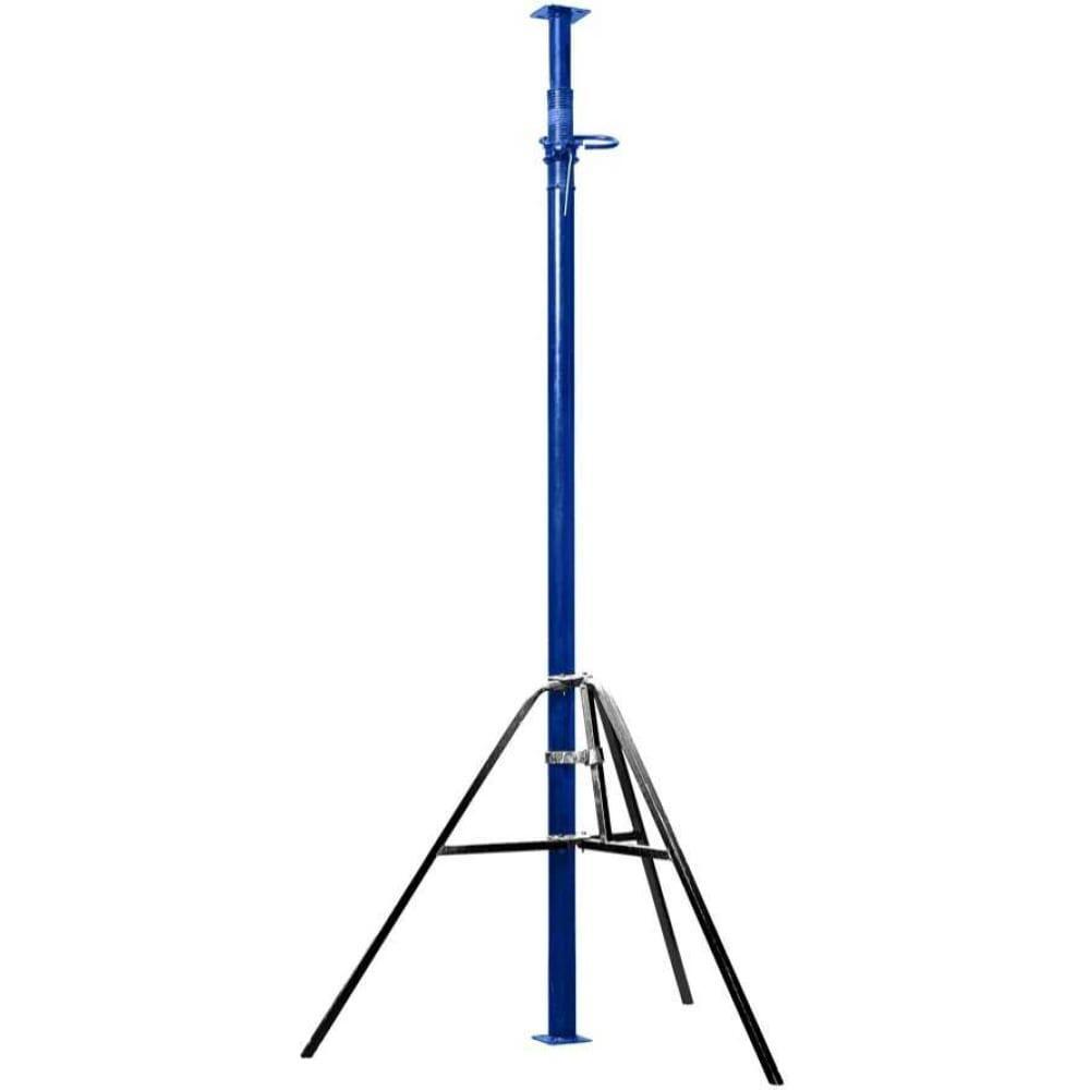 Телескопическая стойка для опалубки 4,2 м (домкрат) предназначена для поддержания горизонтальных щитов опалубки при возведении монолитных потолочных перекрытий, а также в качестве временной опоры при строительстве и ремонте. Изготовлена из двух стальных труб 60 и 48 мм с толщиной стенки металла 2,5 и 2 мм соответственно. Нижняя (более широкая) имеет опорную площадку для устойчивости. На нее накручивается опорная гайка и вставляется телескопическая труба меньшего диаметра с прорезями по всей длине. Фиксация нужной длины стойки выполняется крепёжной серьгой через прорези в насадке и отверстия в верхней трубе с опорой на гайку. Минимальная высота данной модели стойки – 2,53 метра, максимальная – 4,2 метра. Чем выше вы выдвигаете стойку, тем меньше на нее должна быть нагрузка. Точные значения для каждого положения высоты указаны в паспорте изделия. Для того, чтобы собрать опалубочную конструкцию перекрытия, кроме телескопической стойки-домкрата вам понадобятся: - ламинированная фанера (не менее 15 мм толщиной) - двутавровая деревянная балка - тренога (для обеспечения устойчивости стойки) - унивилка (для размещения двутавровой балки и фанеры) Порядок монтажа телескопических стоек на строительной площадке 1. На площадке, подготовленной в соответствии с ППР объекта, устанавливается тренога. При этом поворотные ноги располагаются так, чтобы обеспечить ее максимальную устойчивость с учетом конфигурации опорной поверхности. 2. Поднимают фиксатор треноги до упора, устанавливают телескопическую стойку и опускают фиксатор, который, скользя по наклонной трубе, зажимает стойку. 3. После установки телескопических стоек в треноги, все стойки под опалубку выравниваются по высоте и производится монтаж щитов опалубки перекрытий в следующем порядке: - продольная (нижняя) балка укладывается в унивилку; - поперечная балка или брус (верхняя) укладывается на продольную; - с помощью гайки стойки по уровню производится точная юстировка опалубочного стола; - после точной юстировки производится монтаж фанеры.