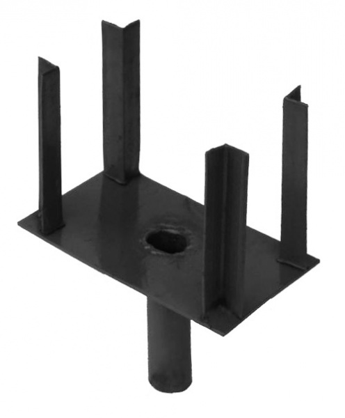 Унивилка для опалубки выполняет функцию опоры и фиксатора двутавровых продольных балок. Закрепляется на верхнем торце телескопической стойки опалубки и может служить соединителем для продольных балок в местах их пересечения.