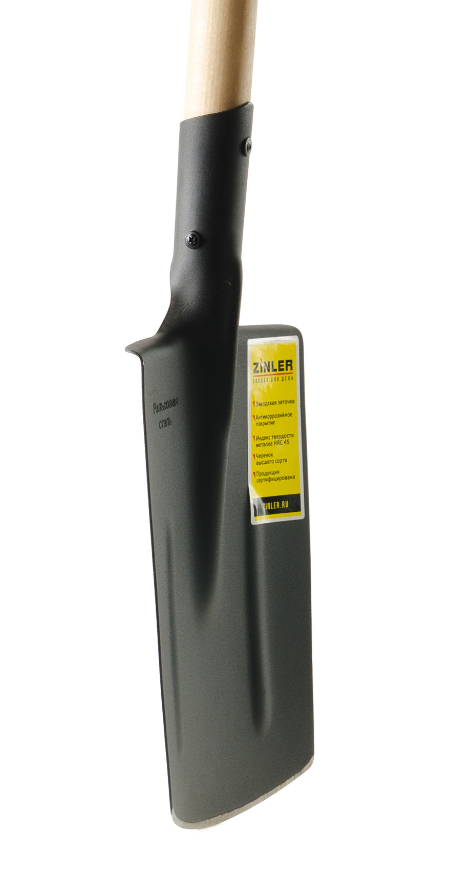 Эта лопата хороша тем, что при работе с грунтом она выбирает примоугольником, а не галочкой, тем самым обеспечивает более тчательную перекопку. Ей удобно срезать дерн, окапывать и пересаживать деревья, так как она легко перерубает корни, а в зимний переод ее можно использовать в качестве ледоруба.