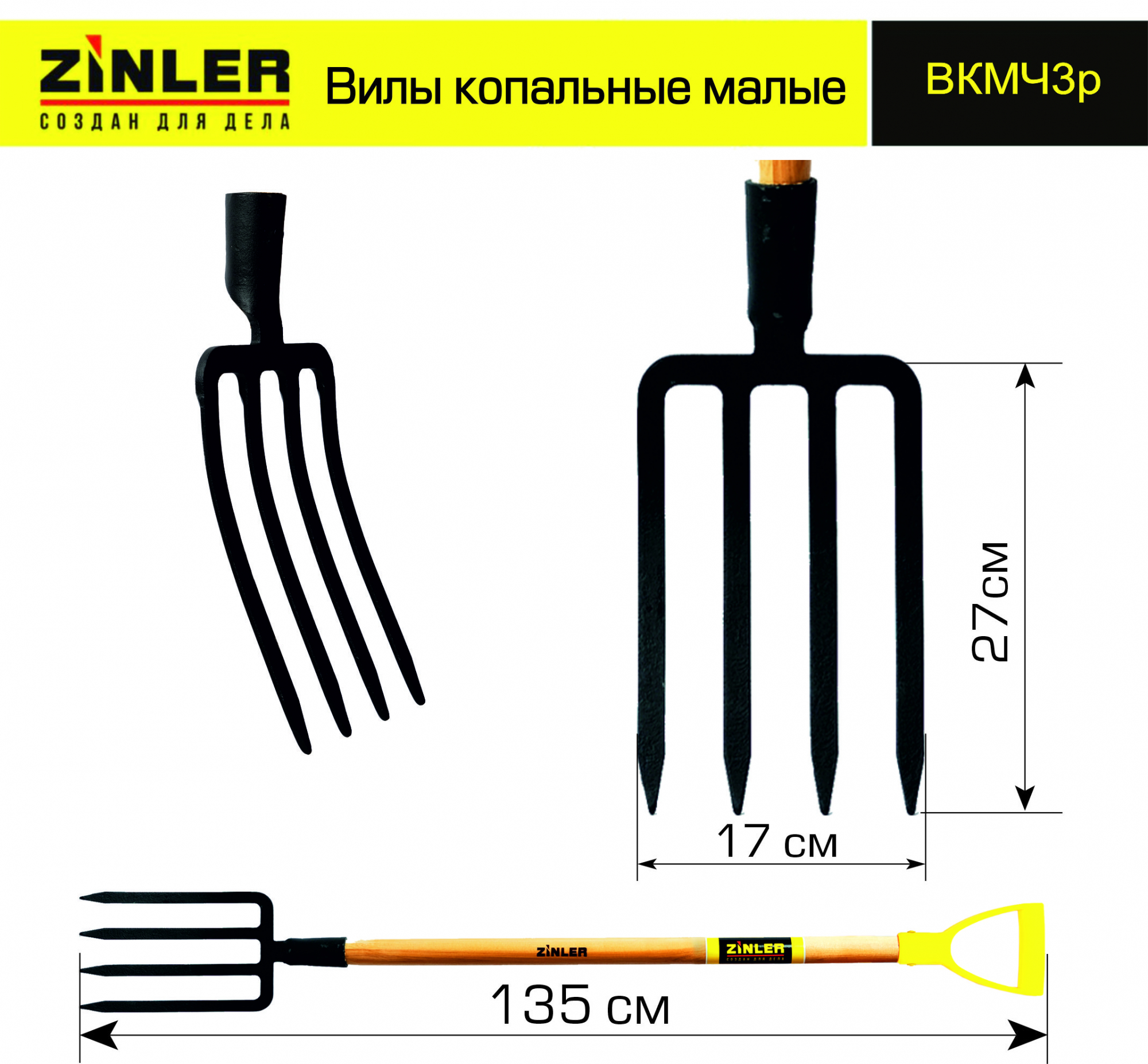 Вилы копальные малые цельнолитые c деревянным черенком 960 мм и ручкой