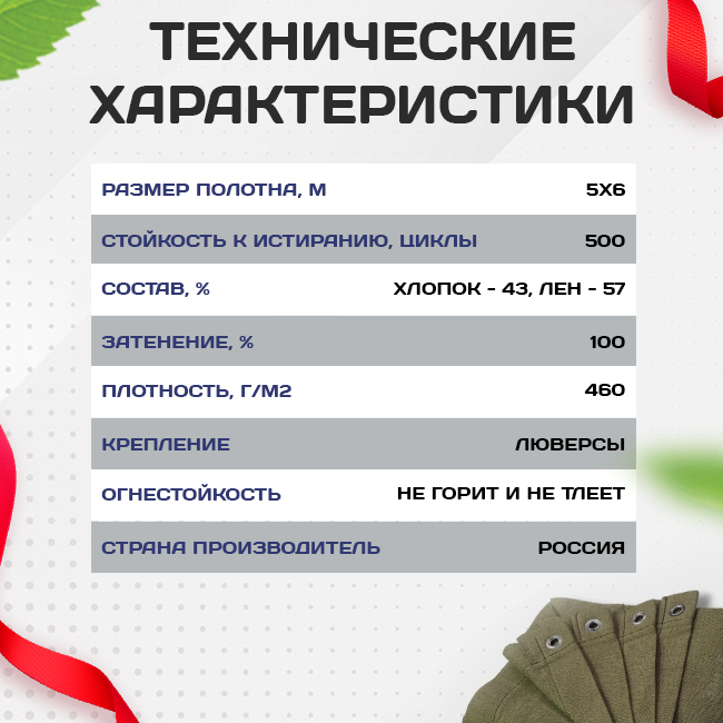Материал: брезент ОП - изготовлен из натуральных волокон с огнеупорной пропиткой.