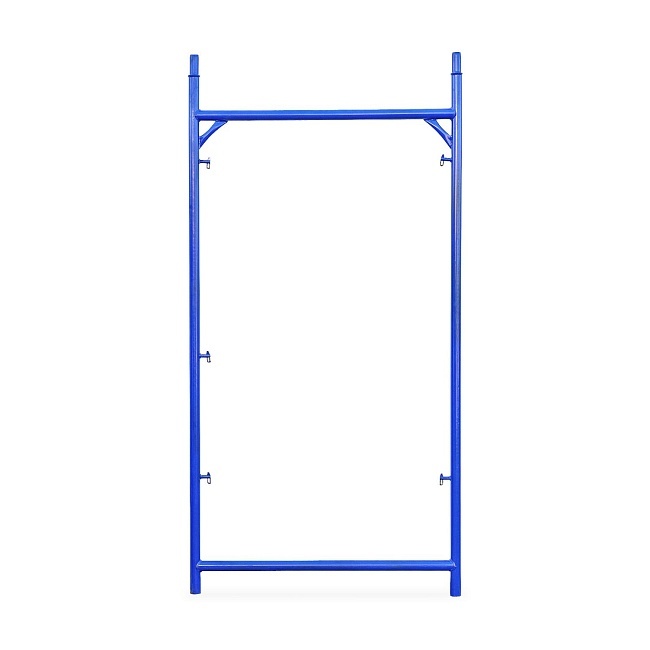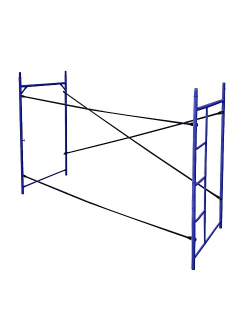 В комплекте отсутствуют мелкие детали, что существенно облегчает сборку. Это важно в условиях ограниченного времени. Секция состоит из проходной рамы, рамы с лестницей, горизонталей и комплекта диагоналей. Все элементы соединяются между собой флажковым механизмом. Изделие имеет антикоррозийное покрытие, не боится работы в сложных погодных условиях, в том числе при перепаде температур.