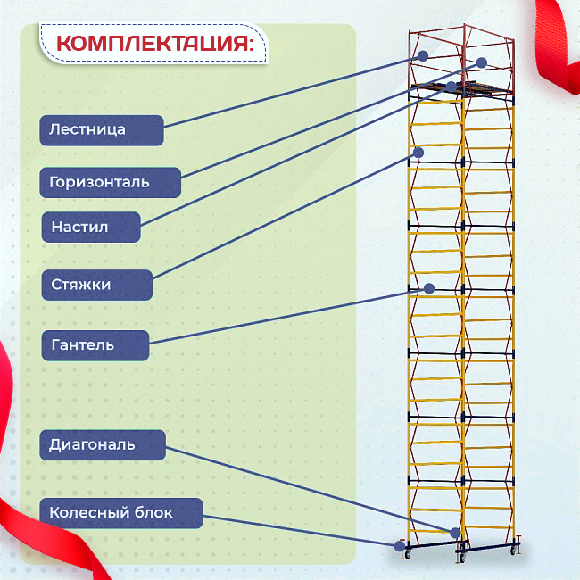 Вышка ВСП-250 шириной 1.2х2.0 метра - универсальная передвижная модель для строительных, ремонтных, монтажных работ как внутри помещения, так и для уличных работ. Легко собирается без необходимости использования специального инструмента (все элементы соединяются флажковыми механизмами). Ее просто перемещать по объекту за счет наличия больших прорезиненных колес, которые также снабжены фиксаторами положения. Позволяют тонко подрегулировать высоту вышки и зафиксировать ее от нежелательных перемещений во время работ. Данную модель вышки можно доращивать по высоте дополнительными секциями до 19 метров (не входят в стоимость). Секции вышки снабжены диагональными металлическими стяжками. Они обеспечивают дополнительную устойчивость при резких порывах ветра. Настилы изготовлены из фанеры толщиной 10 мм. Один из них имеет люк для безопасного и удобного перемещения во время работ. Если докупить еще один настил, можно работать вдвоем: вышка выдерживает вес до 250 кг.
