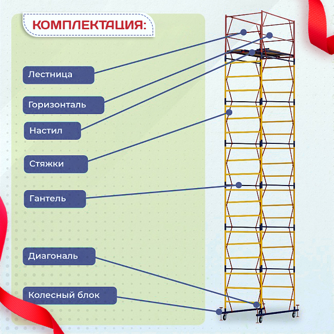 Вышка ВСП-250 шириной 1.2х2.0 метра - универсальная передвижная модель для строительных, ремонтных, монтажных работ как внутри помещения, так и для уличных работ. Легко собирается без необходимости использования специального инструмента (все элементы соединяются флажковыми механизмами). Ее просто перемещать по объекту за счет наличия больших прорезиненных колес, которые также снабжены фиксаторами положения. Позволяют тонко подрегулировать высоту вышки и зафиксировать ее от нежелательных перемещений во время работ. Данную модель вышки можно доращивать по высоте дополнительными секциями до 19 метров (не входят в стоимость). Секции вышки снабжены диагональными металлическими стяжками. Они обеспечивают дополнительную устойчивость при резких порывах ветра. Настилы изготовлены из фанеры толщиной 10 мм. Один из них имеет люк для безопасного и удобного перемещения во время работ. Если докупить еще один настил, можно работать вдвоем: вышка выдерживает вес до 250 кг.