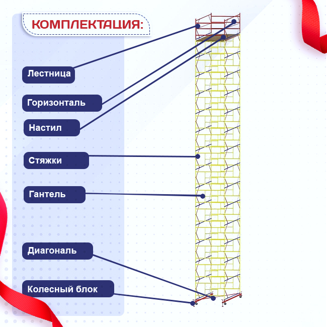 Вышка ВСП-250 шириной 2.0х2.0 метра - универсальная передвижная модель для строительных, ремонтных, монтажных работ как внутри помещения, так и для уличных работ с увеличенной рабочей площадкой. За счет ширины базового блока на ней комфортно работать сразу нескольким людям, разместив весь необходимый инструмент и материалы. Легко собирается без необходимости использования специального инструмента (все элементы соединяются флажковыми механизмами). Ее просто перемещать по объекту за счет наличия больших прорезиненных колес, которые снабжены фиксаторами положения. Позволяют тонко подрегулировать высоту вышки и зафиксировать ее от нежелательных перемещений во время работ. Данную модель вышки можно доращивать по высоте дополнительными секциями до 20 метров (не входят в стоимость). Секции вышки снабжены диагональными металлическими стяжками. Они обеспечивают дополнительную устойчивость при резких порывах ветра. Настил изготовлен из фанеры толщиной 10 мм, состоит из четырех независимых частей, в одной из которых есть люк для безопасного и удобного перемещения для проведения работ. Также настилы можно размещать на разных уровнях вышки для одновременных работ, соблюдая технику безопасности. Помните, вышка выдерживает общий вес до 250 кг.